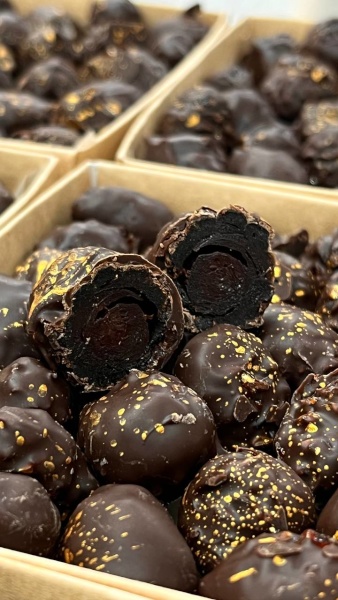 Нежные, вкусные и мягкие цукаты из сосновых шишек мы одели в темный шоколад.